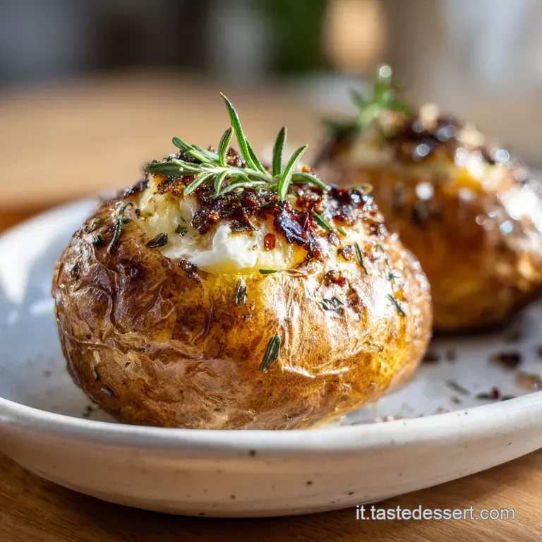 Quando servi le tue Patate al forno ripiene, presentale su un tagliere di legno o direttamente sulla teglia di cottura per un effetto rustico e accogliente. Accompagnale con un'insalata verde croccante condita con una citronette acida per contrastare la ricchezza del formaggio. Se vuoi trasformarlo in un piatto unico memorabile, puoi abbinarle a una porzione di Orata al Forno ricetta se preferisci il pesce, o a un brasato morbido.