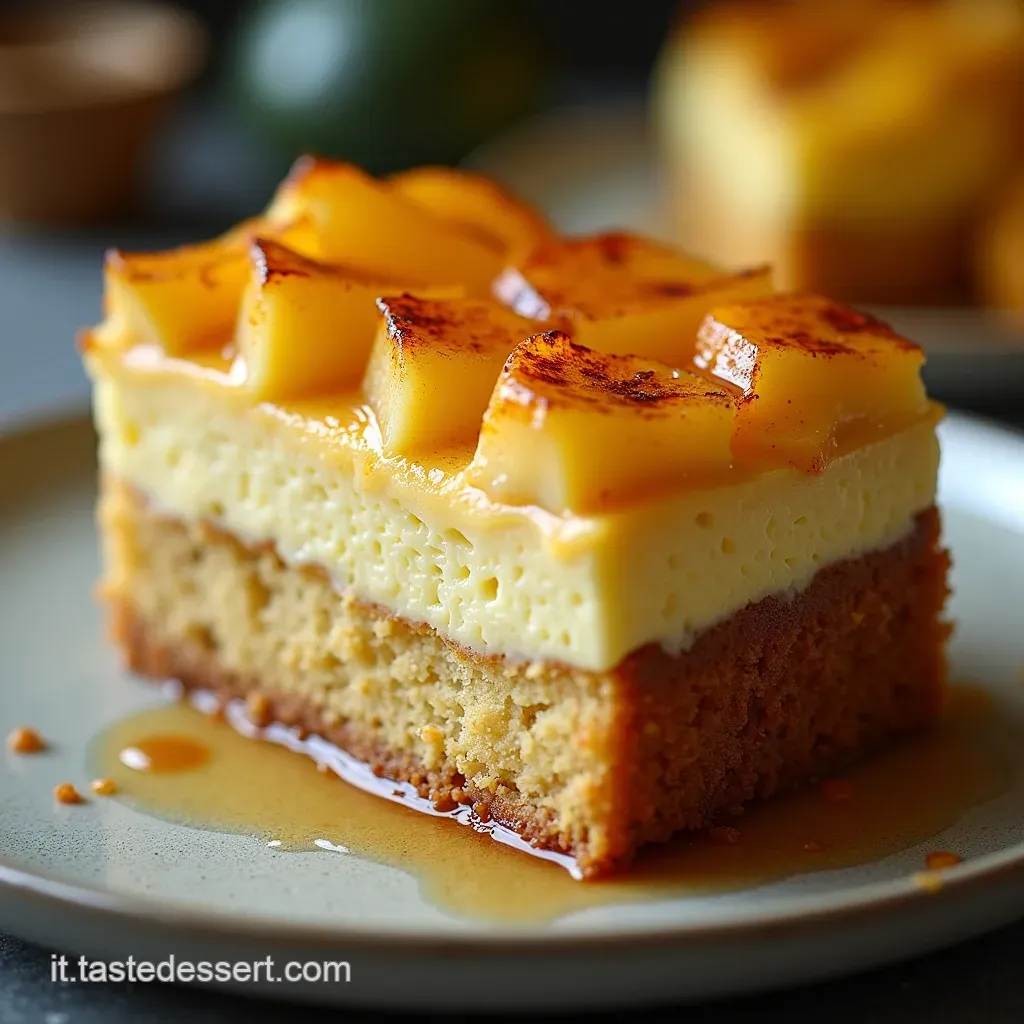 L’impatto visivo è sorprendente: uno strato lucido e caramellato che avvolge fette succose di ananas, trasformandosi, una volta capovolta, in una corona dorata pronta per essere gustata.